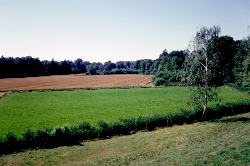 Juli 2001: Hechtenloch Richtung Nordwesten: Weide und Getreidefeld